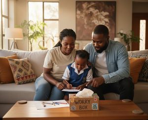- turn an empty tissue box into a ‘worry’ box, and get your child to write about or draw the worries and ‘post’ them into the box – you can sort through the box together at the end of the day or week,